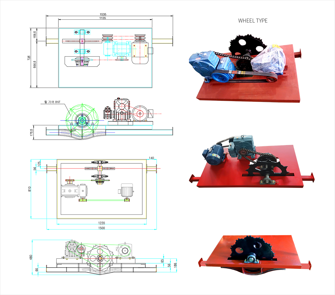 | CATERPILLA TYPE | 마력 : 2HP, 3HP, 5HP, 7.5HP (콘베어 길이와 이송 속도나 중량에 따라 결정) |
