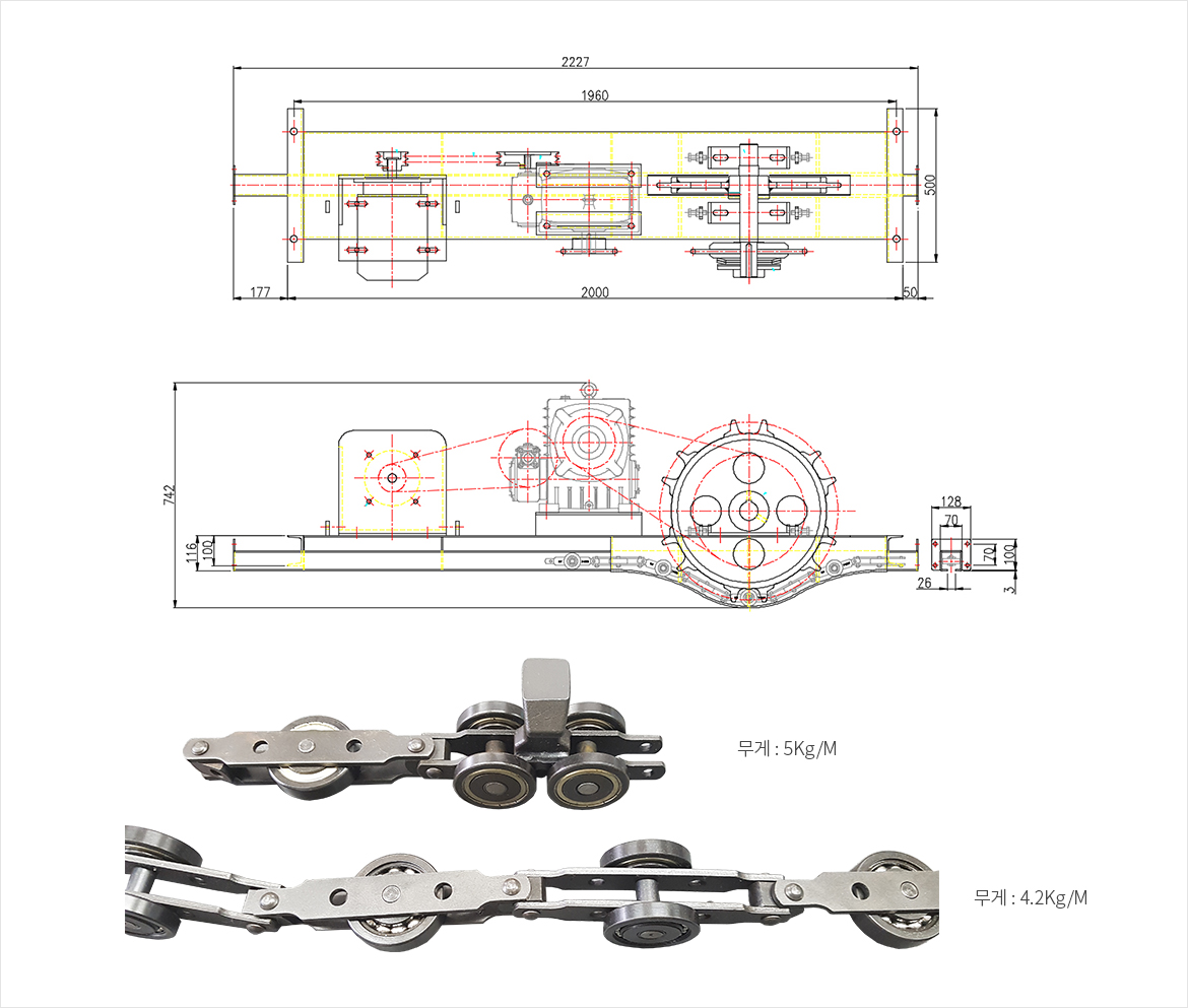 - 마력 : 3HP, 5HP, 7.5HP (콘베어 길이와 이송 속도나 중량에 따라 결정)